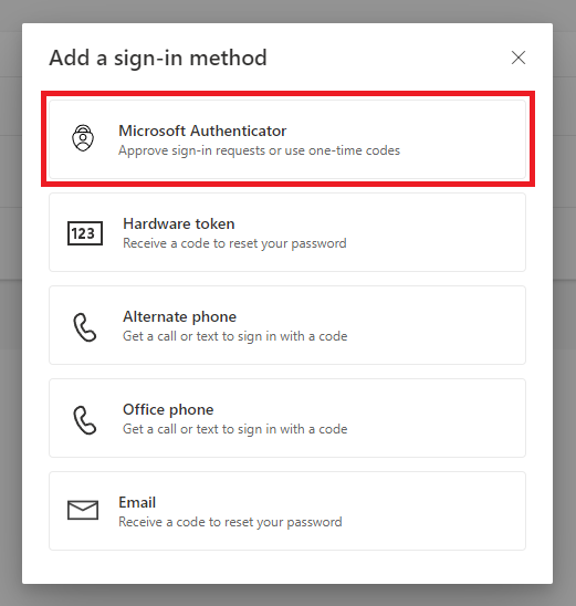 4. In the window that appears, select Microsoft Authenticator App from the menu.