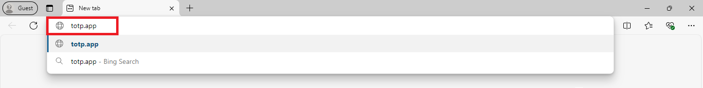 1. Open a new tab in your browser and type totp.app and press enter.