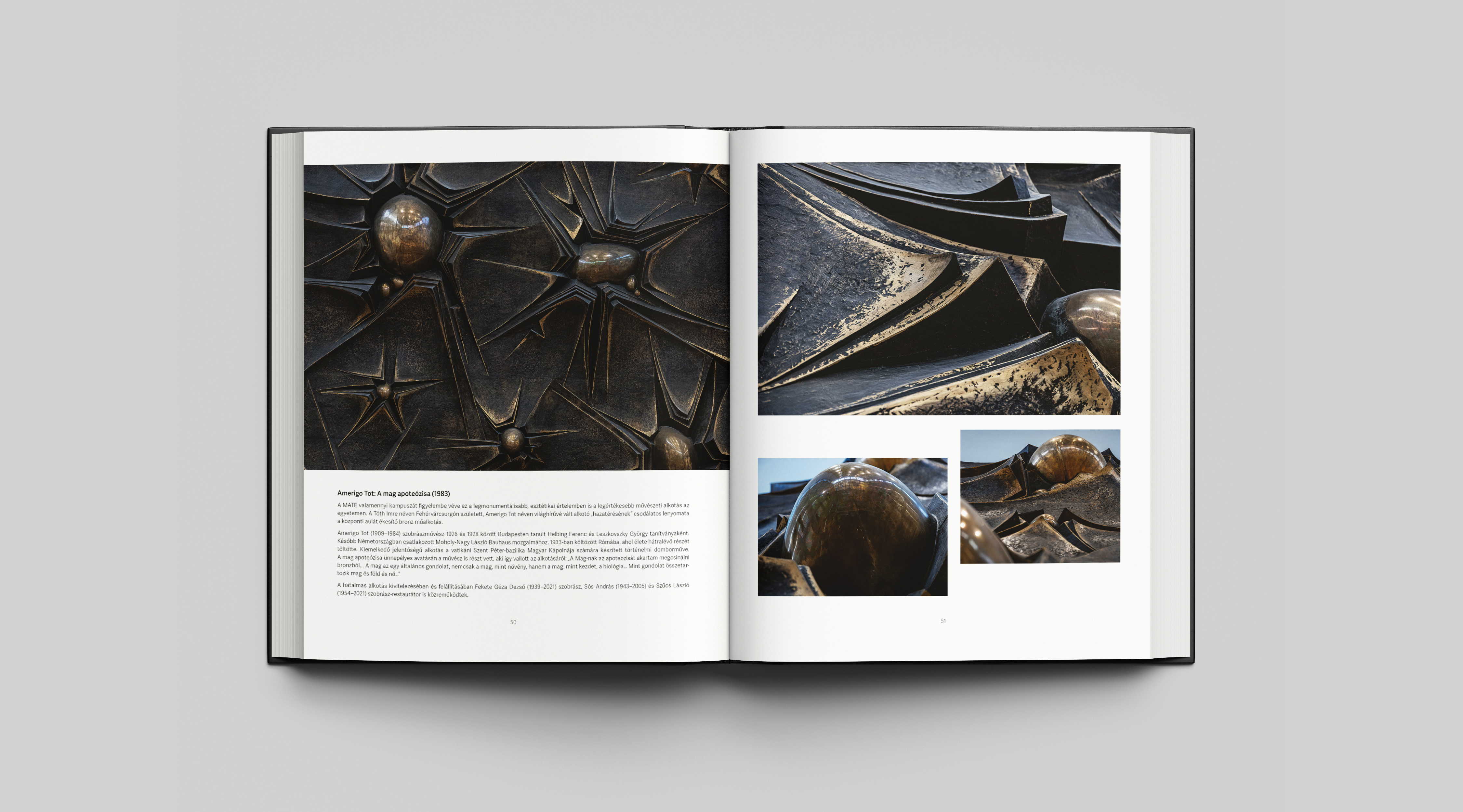 Amint a könyvben is olvasható, egy egyetem több mint oktatási és kutatási helyszín. Egy egyetem szellemi tér, amelyben nemzedékek tudása, felelőssége és hite rétegződik egymásra. Campusaink szobrai, emlékművei és kulturális értékei ennek a folytonosságnak a látható jelei. Anyagba formált gondolatok, amelyek túlélnek korszakokat és csendes állandóságukkal emlékeztetnek arra, hogy a tudás szolgálat, az alkotás pedig felelősség. Nem véletlen, hogy e könyv címadó műve Amerigo Tottól A mag apoteózisa. A mag az élet kezdete, a jövő ígérete, az időn átívelő folytonosság jelképe. Tot alkotása egyszerre hordozza az egyetemes emberi tapasztalatot és a magyar szellemi hagyomány mélységét. Az agrár-felsőoktatás lényegét sűríti magába: azt a hitet, hogy a gondosan elvetett tudás termést hoz – nemcsak a földeken, hanem a közösség egészében is.
