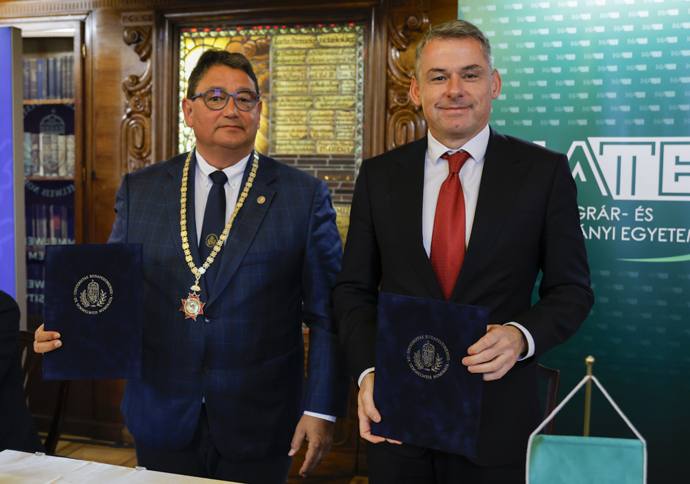 Együttműködési megállapodás keretében kezdődik közös munka a Magyar Agrár- és Élettudományi Egyetem, valamint a Semmelweis Egyetem összefogásával. A partnerségnek keretet adó szerződést Dr. Gyuricza Csaba és Dr. Merkely Béla, a két intézmény rektorai látták el kézjegyükkel március 2-án, Budapesten.