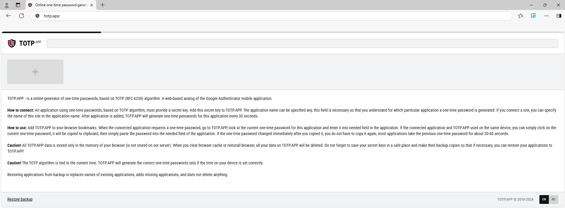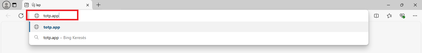 1. Nyisson egy új lapot a böngészőjében és a címsorba gépeljebe a következőt: totp.app és nyomja le az enter billentyűt.