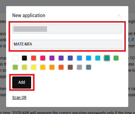 10. Illessze be a 8. pontban kimásolt titkos kulcsot, adjon nevet az alkalmazásnak és kattintson az Add gombra.