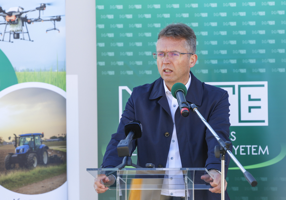 „A MATE Szent István Campusa világelső a legfenntarthatóbb egyetemi campusok tekintetében, hiszen itt minden hulladék hasznosul” – kezdte beszédét Hankó Balázs kultúráért és innovációért felelős miniszer. „Az Egyetem tudatos döntése volt az, hogy agrár- és élettudományi felsőoktatási intézményként – a környezet- vagy agrármérnöki képzések kapcsán – ne csak oktasson, ne csak kutasson, hanem gyakorlati szinten is minden hulladékot hasznosítson. A MATE ebben a tekintetben teljesíti azt a küldetését is, miszerint a teremtett világunkra vigyáz úgy, hogy a Kárpát-medence szépségeit unokáink és dédunokáink is láthatják. Amikor a MATE gödöllői fejlesztéseire tekintünk, láthatjuk, hogy az elmúlt hónapok során újult meg az aula épülete, hamarosan befejeződik a szemináriumi épület felújítása, továbbá ide érkezik a Magyar Mezőgazdasági Múzeum, amely egyedülálló oktatási, kutatási és bemutatóteret biztosít majd egyedülálló módon Európában. A megújult magyar felsőoktatás sikerei jól látszódnak. Amikor a magyar felősoktatás megújításáról döntöttünk, akkor a gyakorlatot, az oktatást és a kutatást egyben láttuk, hiszen az egyetemek a magyar nemzet, a magyar gazdaság szolgálatában kell, hogy álljanak, ahogyan a MATE is teszi” – hívta fel a figyelmet Hankó Balázs.