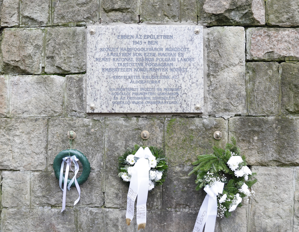 A rendezvényen Fábián Balázs, a Gödöllői Városi Múzeum igazgatóhelyettese idézte fel az emléktábla és az 1945-ben szovjet hadifogságba esett és itt, az egyetem területén őrzött katonák történetét. Amint elhangzott, nyolc évtizeddel ezelőtt (1945 januárjában), Budapest ostroma alatt az akkori premontrei gimnázium épületét a szovjetek gyűjtőtáborrá nevezték ki. A fogolytábor két hónapos fennállása alatt azonban nemcsak katonák, de a katonakorú civileket is itt zárták szűk, embertelen körülmények közé. Egyes források szerint 50-60 ezer főt tartottak itt fogva, s közülük mintegy ötezren sosem hagyhatták már el élve a fogolytábort. A láger felszámolását követően a túlélőket gyalogszerrel meneteltették el munkaszolgálatra.
