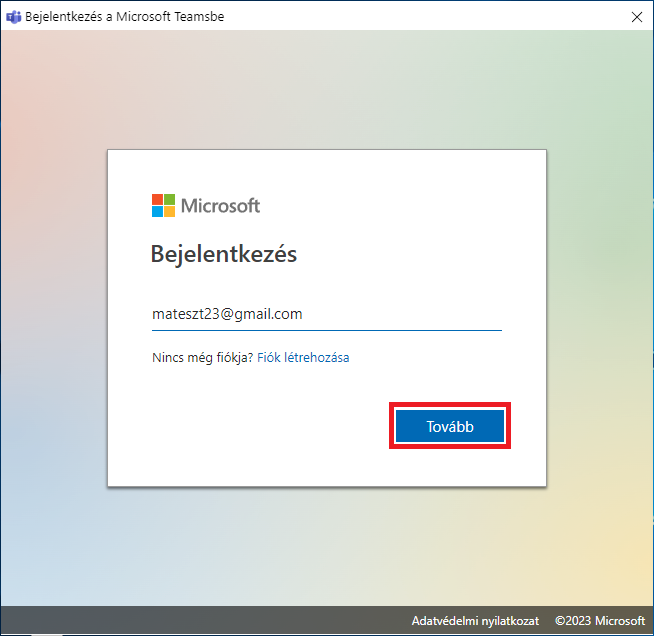 9. Amennyiben ön egyáltalán nem használta még a Teams alkalmazást a bejelentkezéshez Kattintson az Első lépések lehetőségre, majd adja meg az e-mail címét, amellyel meghívták a csapatba.