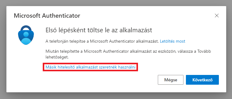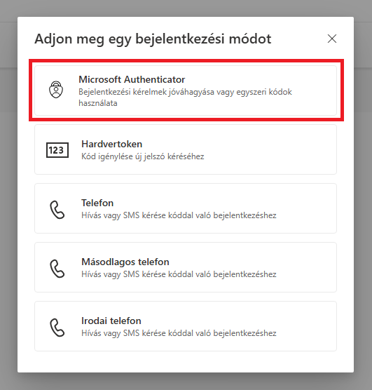 4. A megjelenő ablakban válassza ki a Microsoft Authenticator pontot.