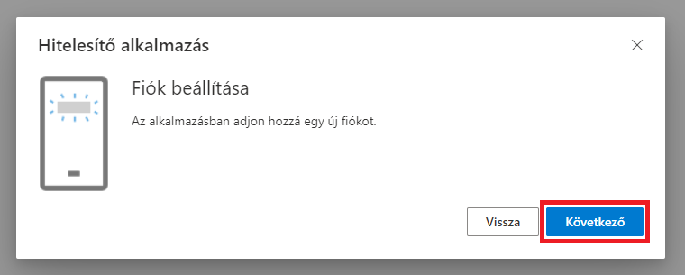 12. Váltson vissza a MyAccount böngészőlapra és a 8. pontban megjelent ablakban kattintson a Következő gombra,